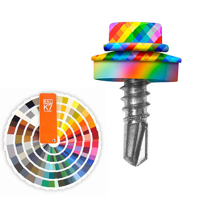 Кровельные саморезы Daxmer (Даксмер) по металлу цветом порошковая покраска в любой цвет по каталогу RAL 5,5*19мм имеют частую резьбу, а специальная металлическая шайба с ЕРDМ-уплотнителем 2,8 мм обеспечивает плотное прилегание профилированного металла (кровли) к обрешетке, а также препятствует попаданию влаги. Также ЕРDМ-уплотнитель защищает от перепада температур (за счет высокого содержания каучука), который адаптируется под окружающую температуру и не позволяет кровле или забору «гулять», плотно прижимая листы к основанию.