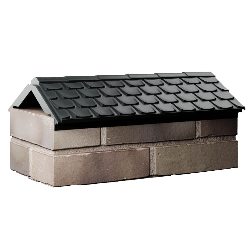 Парапет Elbrus Черный 303 х 510 х 105 мм с посадкой на 1 кирпич (255 мм) под натуральную черепицу может быть применен как в цокольной, так и в верхней части забора в виде конька.