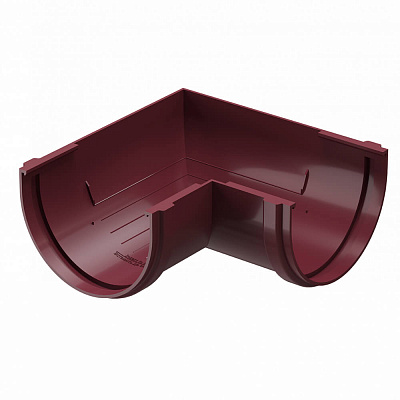 Угловой элемент желоба универсальный ДЕКЕ STANDARD d120мм 90 градусов цвет RAL 3005 Красный в Луганске. Угловые элементы устанавливаются как на внешних, так и на внутренних углах кровли и предназначены для соединения желобов.